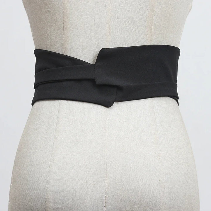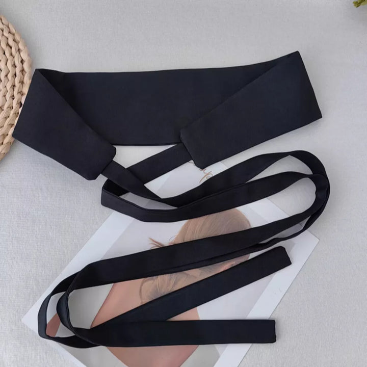 Grâce à sa bande large et son nouage décoratif, cette pièce s’ajuste facilement tout en maintenant la silhouette. Le textile fluide, à la finition satinée, permet de l’intégrer aussi bien à une tenue habillée qu’à une composition plus sobre. L’ensemble allie finesse, équilibre et praticité.