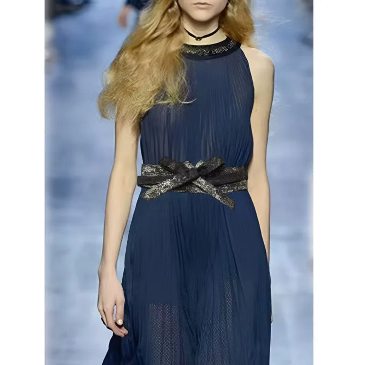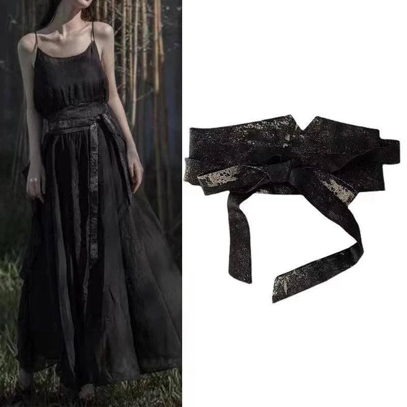 Ce modèle modulable s’ajuste avec précision grâce à son nœud central et sa bande large, offrant un maintien souple mais structuré. Conçue dans un textile de qualité au fini légèrement satiné, elle s’adapte aux tenues habillées comme aux looks plus décontractés. Idéale pour souligner la taille ou transformer une tenue simple en création affirmée.