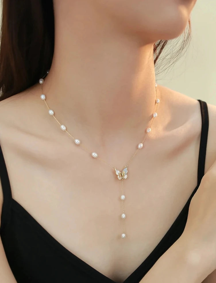 Verleihen Sie Ihrem Outfit einen Hauch purer Eleganz mit unserer Halskette aus natürlichen japanischen Perlen, einem edlen Schmuckstück , das die natürliche Schönheit und einzigartige Handwerkskunst Japans einfängt!