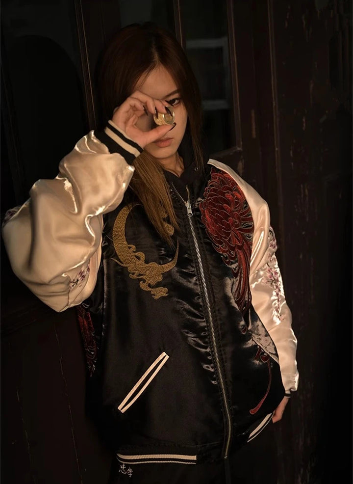 Dieser doppelseitige Sukajan bietet Ihnen zwei unterschiedliche Stile in einem Kleidungsstück , perfekt, um Ihr Aussehen nach Ihren Wünschen zu variieren.