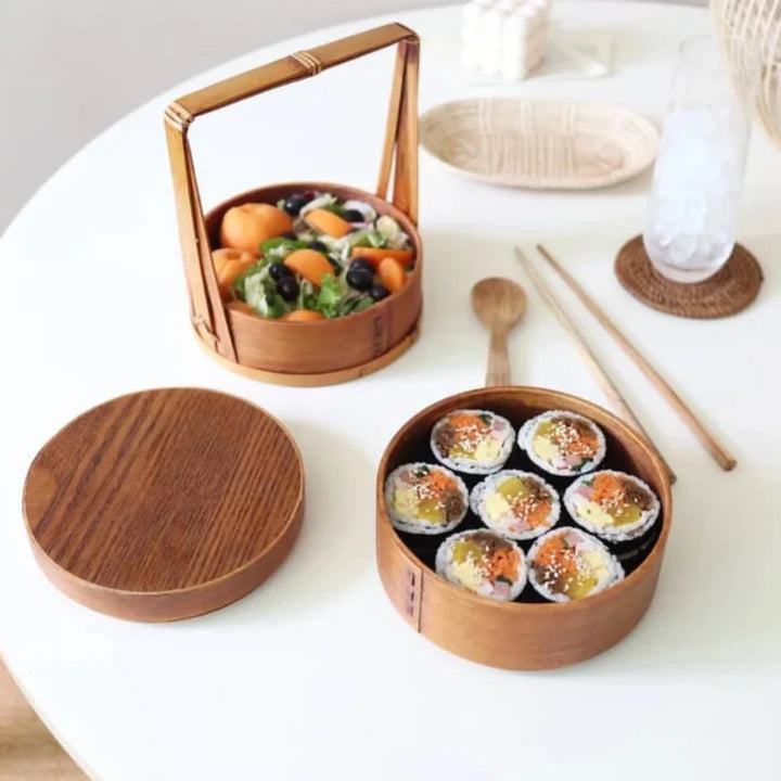 Gönnen Sie sich ein praktisches und elegantes Mittagessen mit dieser Lunchbox aus Holz im japanischen Stil!