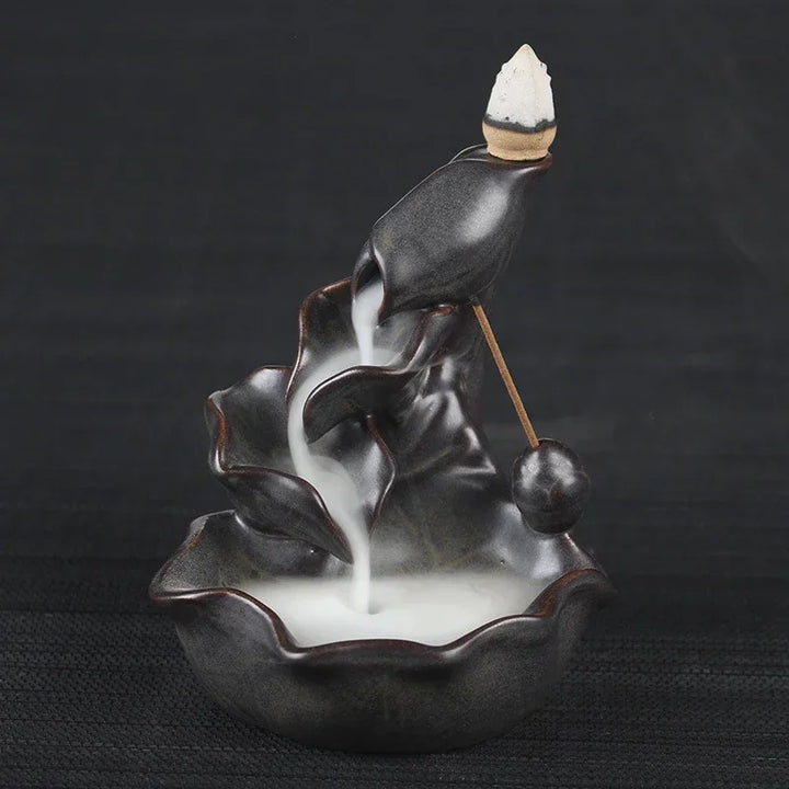- Sein lotusförmiges Design, kombiniert mit einem kaskadenartigen Rauchrückflusseffekt, schafft eine entspannende und spirituelle Atmosphäre, die ideal zum Entspannen und Meditieren ist.