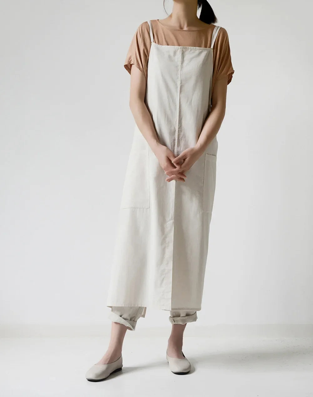 Diese lange Schürze vereint die Funktionalität eines geraden Schnitts mit der Leichtigkeit eines leichten, atmungsaktiven Stoffes. Ihr schlankes, von japanischen Traditionen inspiriertes Design ermöglicht große Bewegungsfreiheit und bietet gleichzeitig perfekten Schutz. Ideal zum Basteln oder Kochen, ist sie pflegeleicht und praktisch für den Alltag.