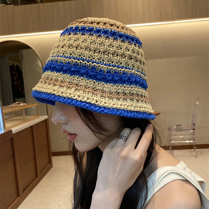 Dieses Kopfstück mit seinen klaren Linien erinnert an die stille Anmut japanischer Landschaften. Das handgefertigte Gewebe, geschmeidig und strukturiert zugleich, vermittelt ein Gefühl von Leichtigkeit und wirft einen weichen, femininen Schatten auf das Gesicht. Es verkörpert eine natürliche Ästhetik, untermalt von rustikalen und raffinierten Akzenten. Ob im Alltag oder im Sommerurlaub getragen, vermittelt es eine schlichte, unkonventionelle und authentische Freiheit, geprägt von Kultur und dezenter Eleganz.