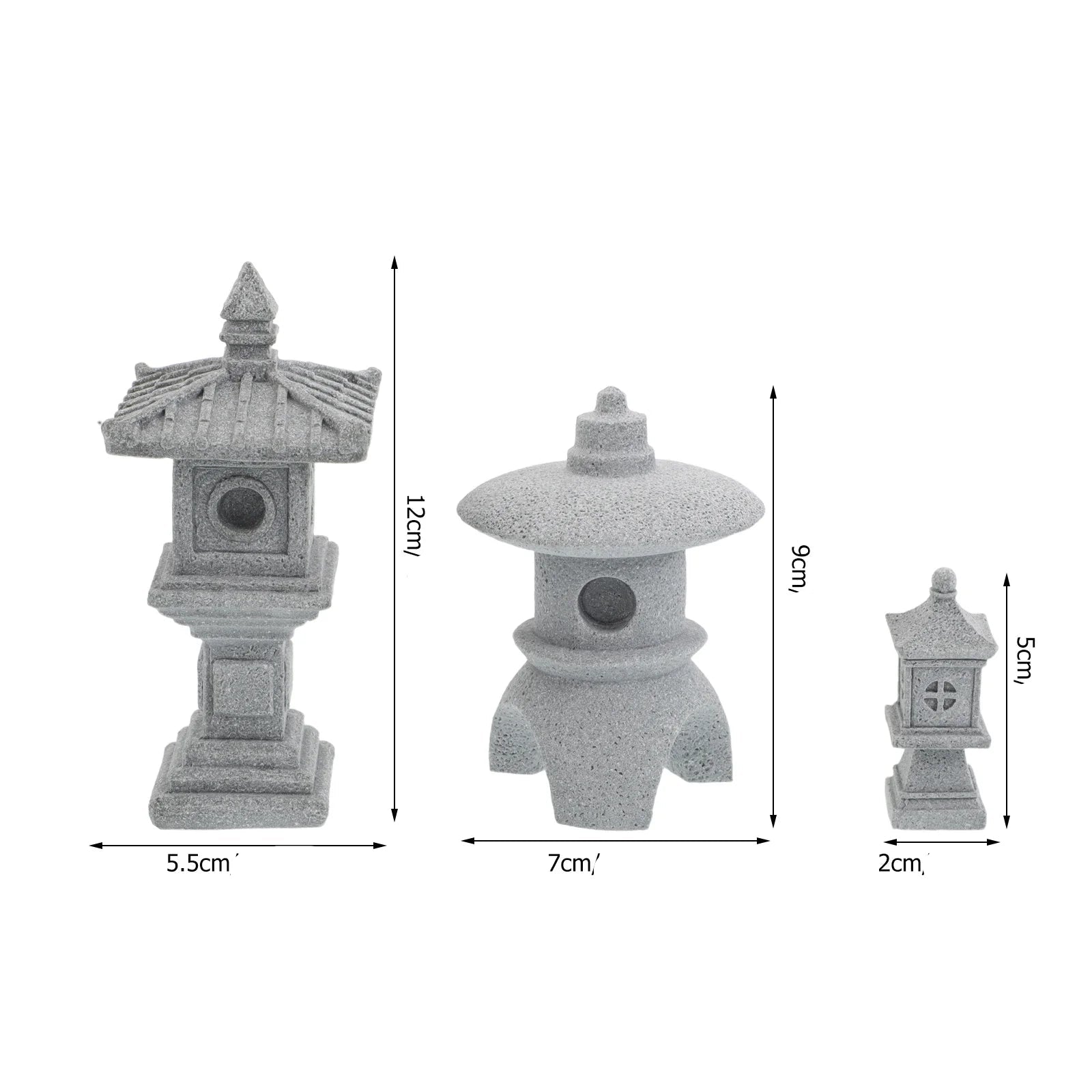 Dimensions : 9 cm x 7 cm x 7 cm (pierre ronde) / 5 cm x 2 cm x 2 cm (pierre carrée) / 12 cm x 5.5 cm x 5.5 cm (pierre haute)