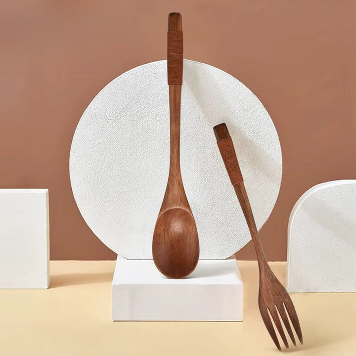 Made from durable wood, this cutlery is both lightweight and sturdy, offering a comfortable grip. Its natural texture and fine finish make it ideal for everyday meals or special occasions.