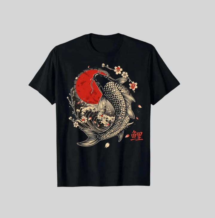 - Show off your passion for Japanese art with this Koi Carp graphic t-shirt ! Inspired by the Harajuku universe, it combines elegance and originality with its carp and sakura motifs (without floral overload).
