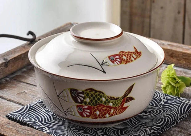 Ce Bol Soupe Japonais avec Couvercle allie esthétique traditionnelle et fonctionnalité moderne, idéal pour savourer vos plats préférés tout en les gardant frais et protégés.
