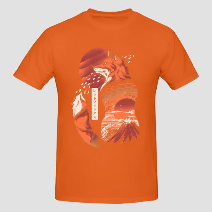 Ce t-shirt japonais artistique présente un renard mystique, symbole de sagesse et de beauté dans la culture japonaise, pour un look audacieux et raffiné.